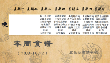 宜昌歐陽修學(xué)校每周食譜(10月8日-10月12日)