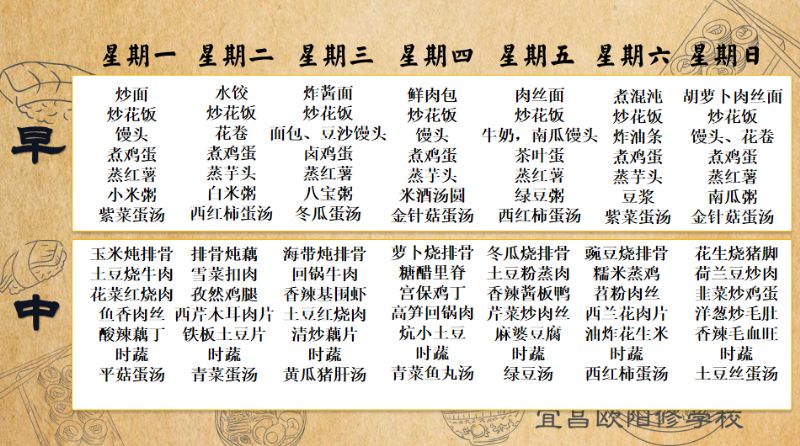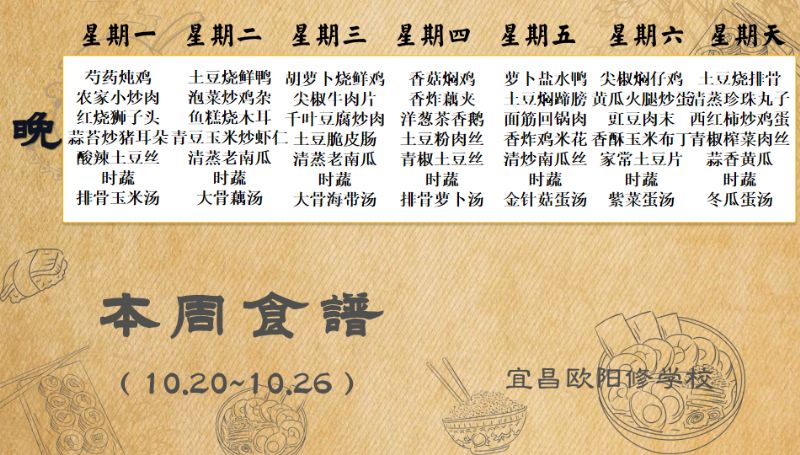 宜昌歐陽(yáng)修學(xué)校每周食譜(10月20日-10月26日)