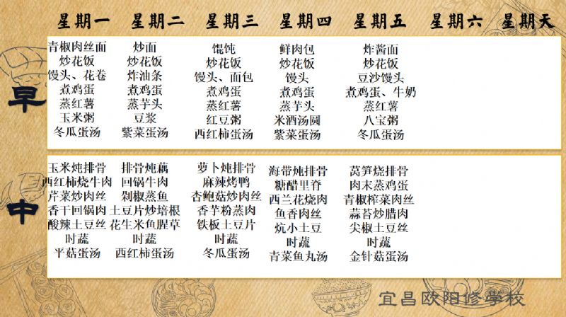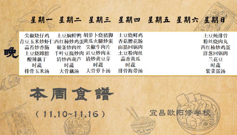 宜昌歐陽修學(xué)校每周食譜(11月10日-11月16日)